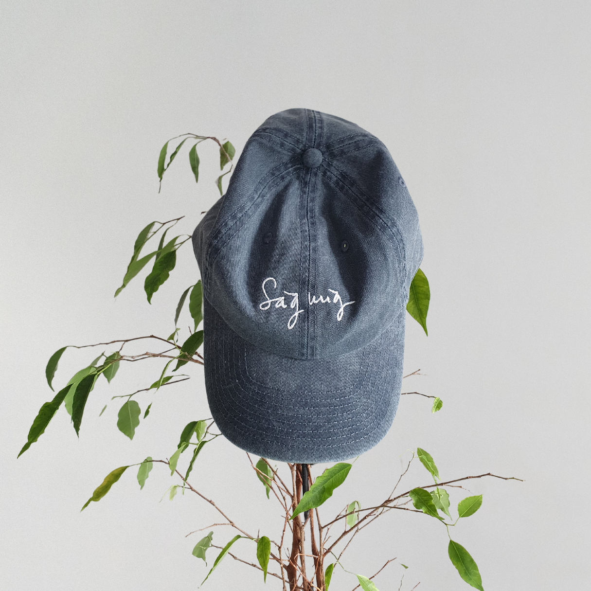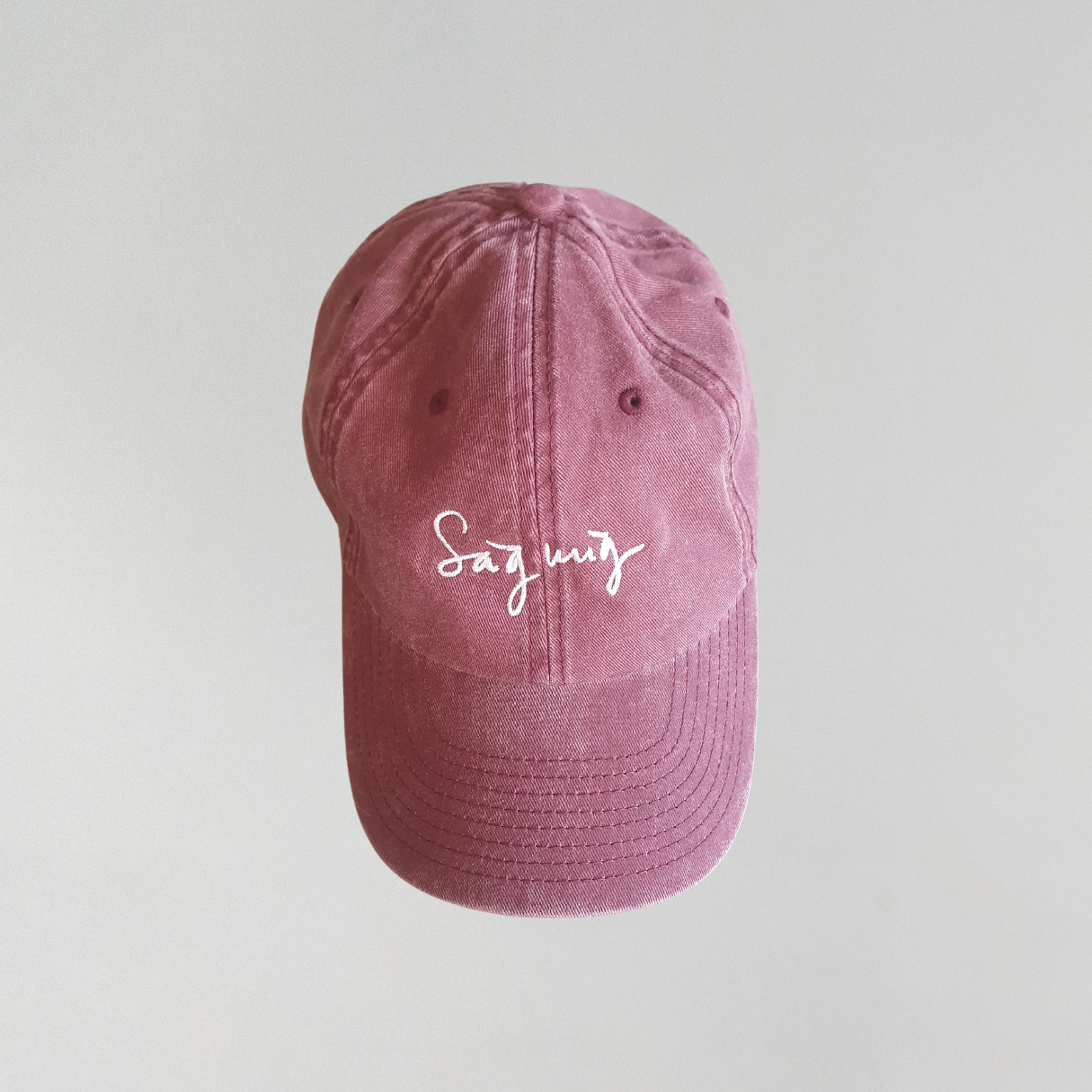 Den populära Säg mig-kepsen, röd eller blå med vit brodyr på framsidan. One size med ställbar rem på baksidan.